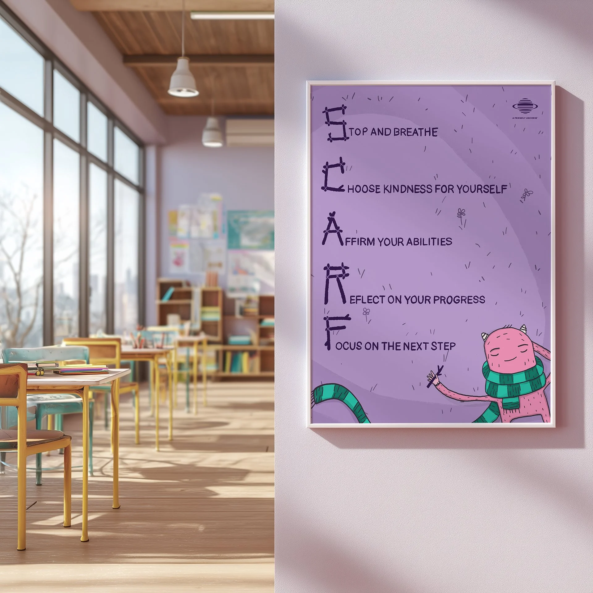 Bring a little encouragement to your classroom (or home!) with our S.C.A.R.F. poster. Just like a cozy scarf, these simple reminders can help kids pause, breathe, and keep moving forward. Download your free digital copy today and print it wherever you like.
